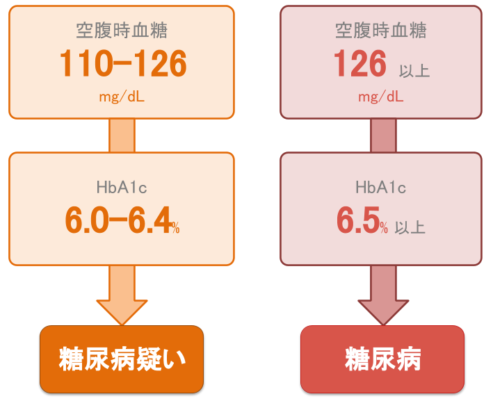 空腹時血糖 ≧100 mg/dL、HbA1c ≧5.6% の方は、一度ご相談ください。