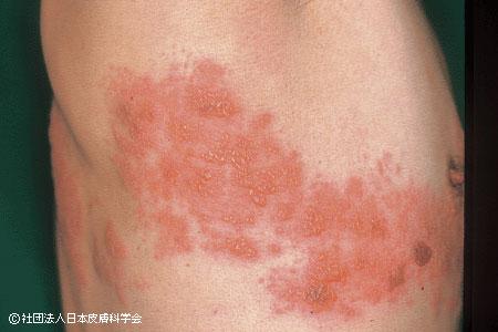 帯状疱疹とは、体の神経に沿って水ぶくれ(水疱)や赤み(発疹)ができる皮膚の病気です。