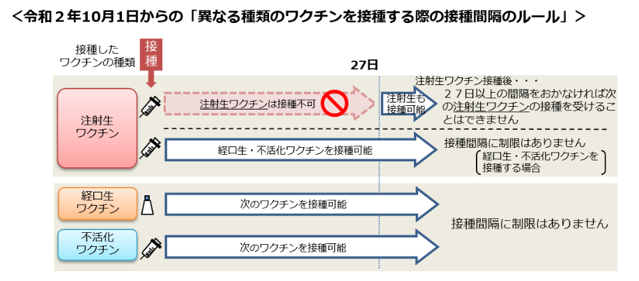 | 不活化ワクチン・経口生ワクチン | インフルエンザワクチン 肺炎球菌ワクチンなど | 制限なし |
